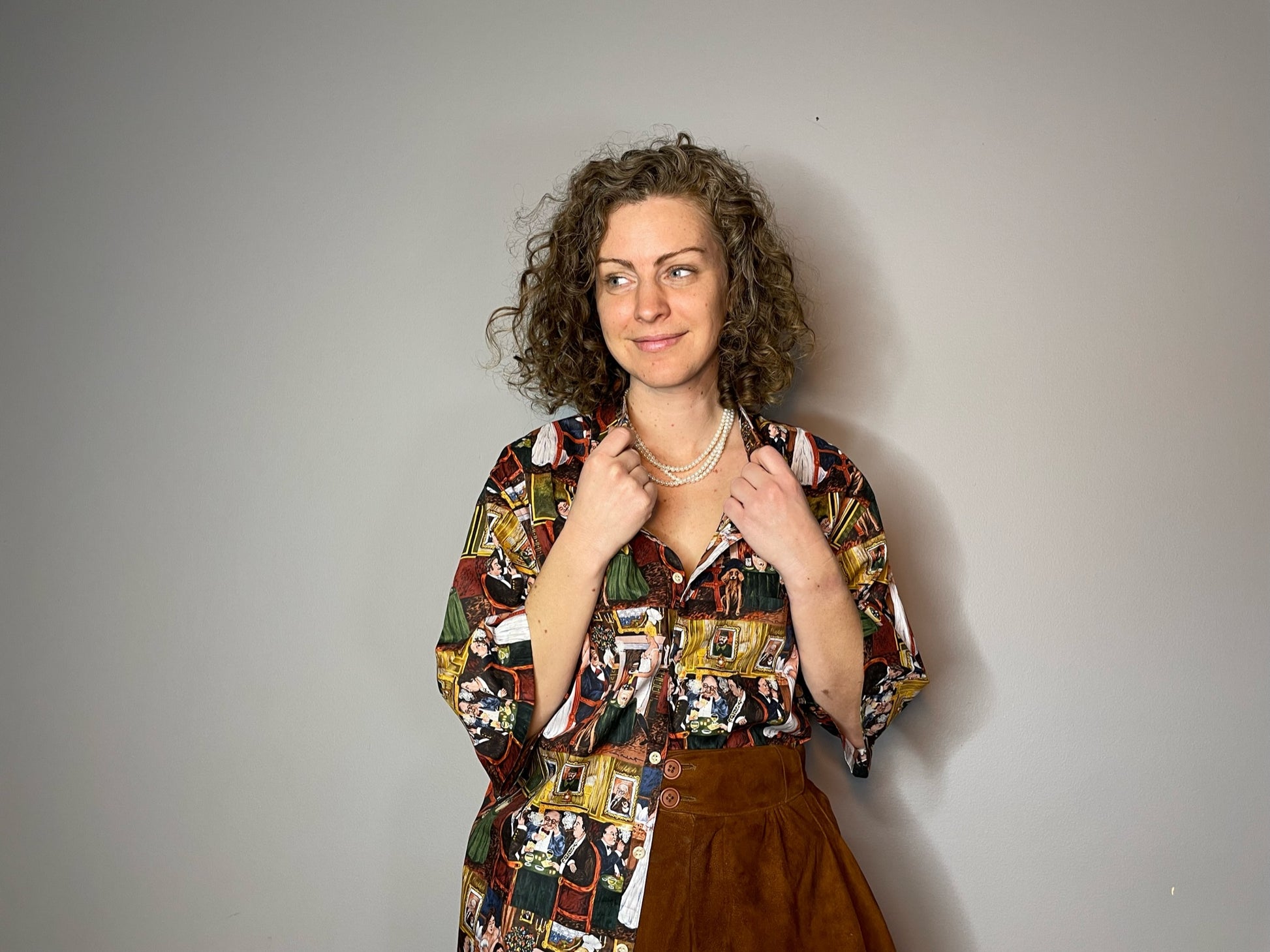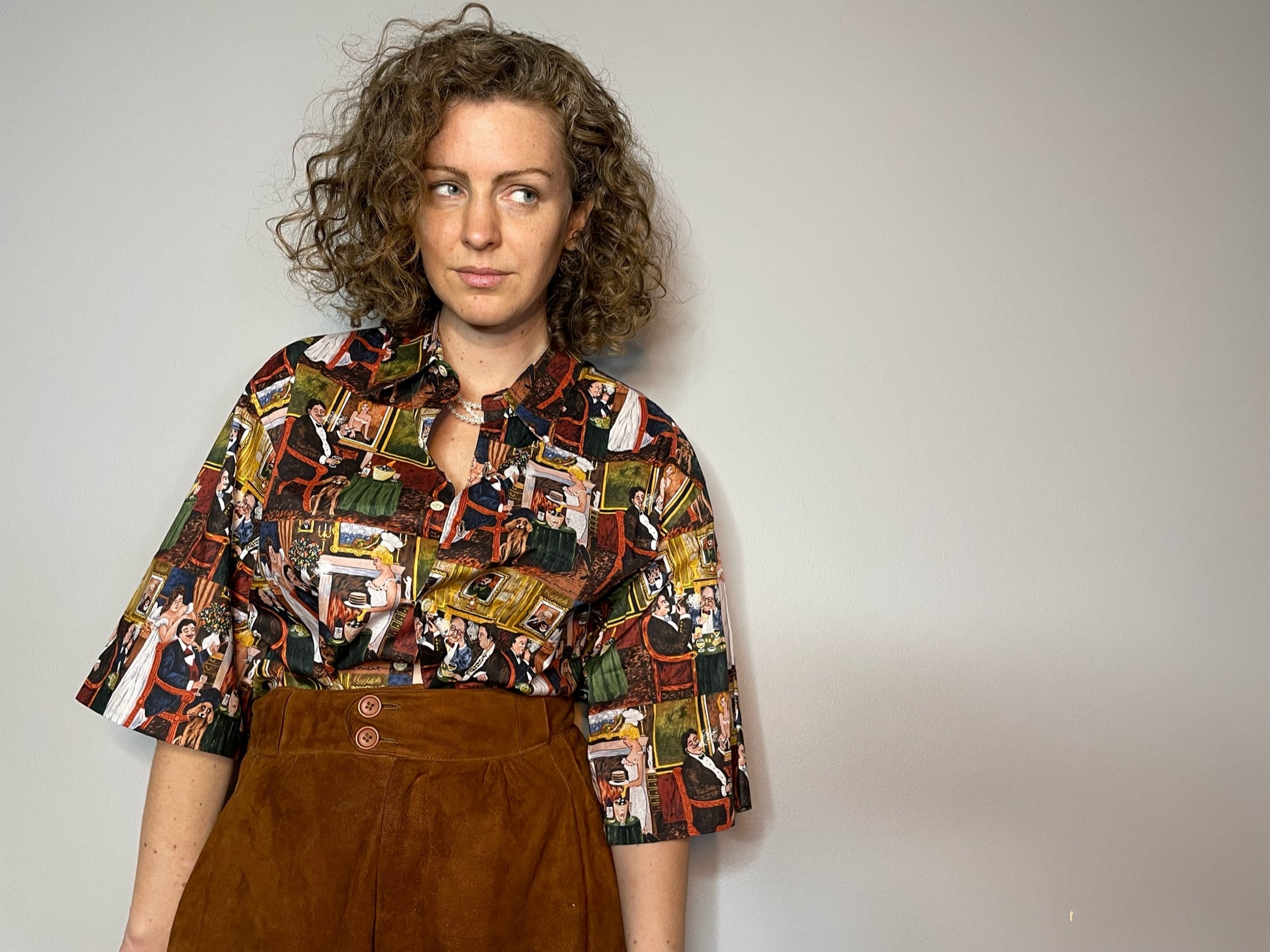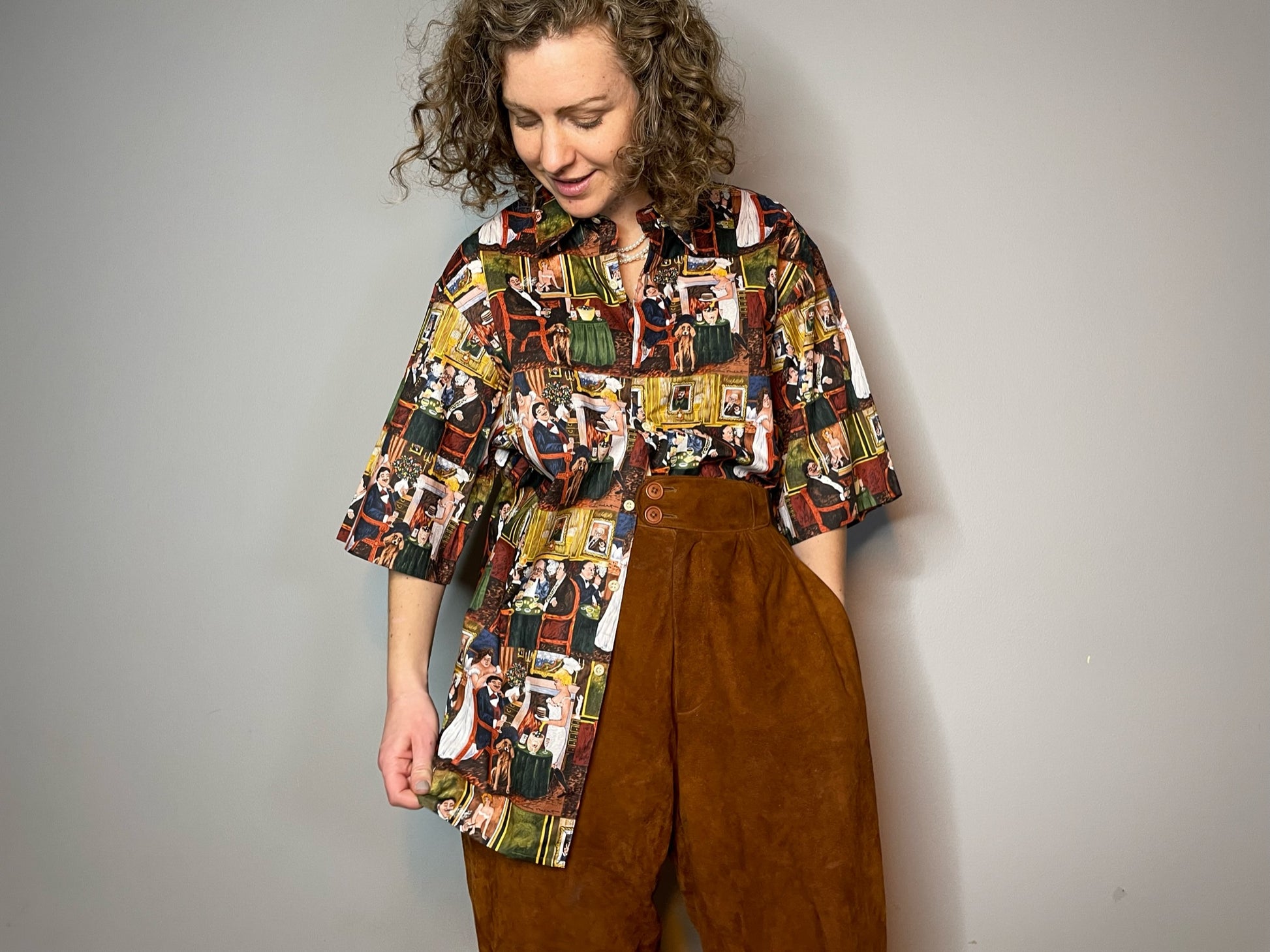 This incredible short sleeve button-down depicts an old-school smoker's lounge in incredible detail.