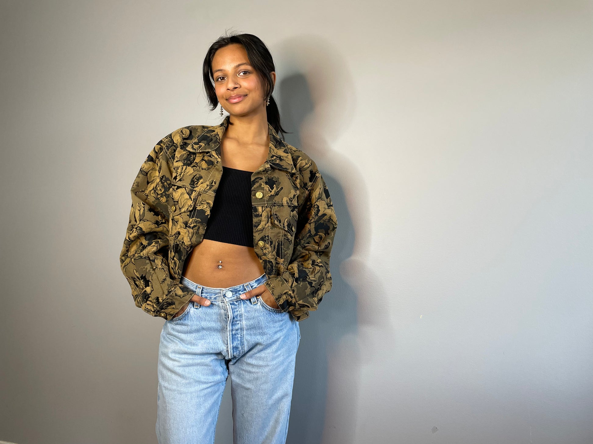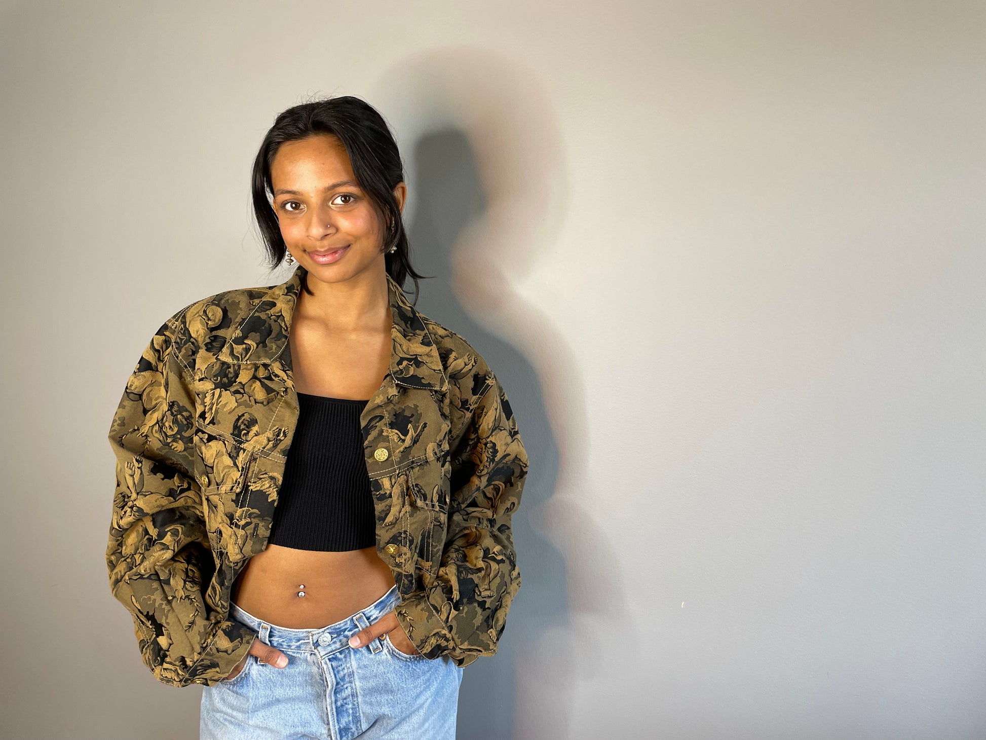 Vintage Trucker Cherub Print Jacket (Medium/Large)