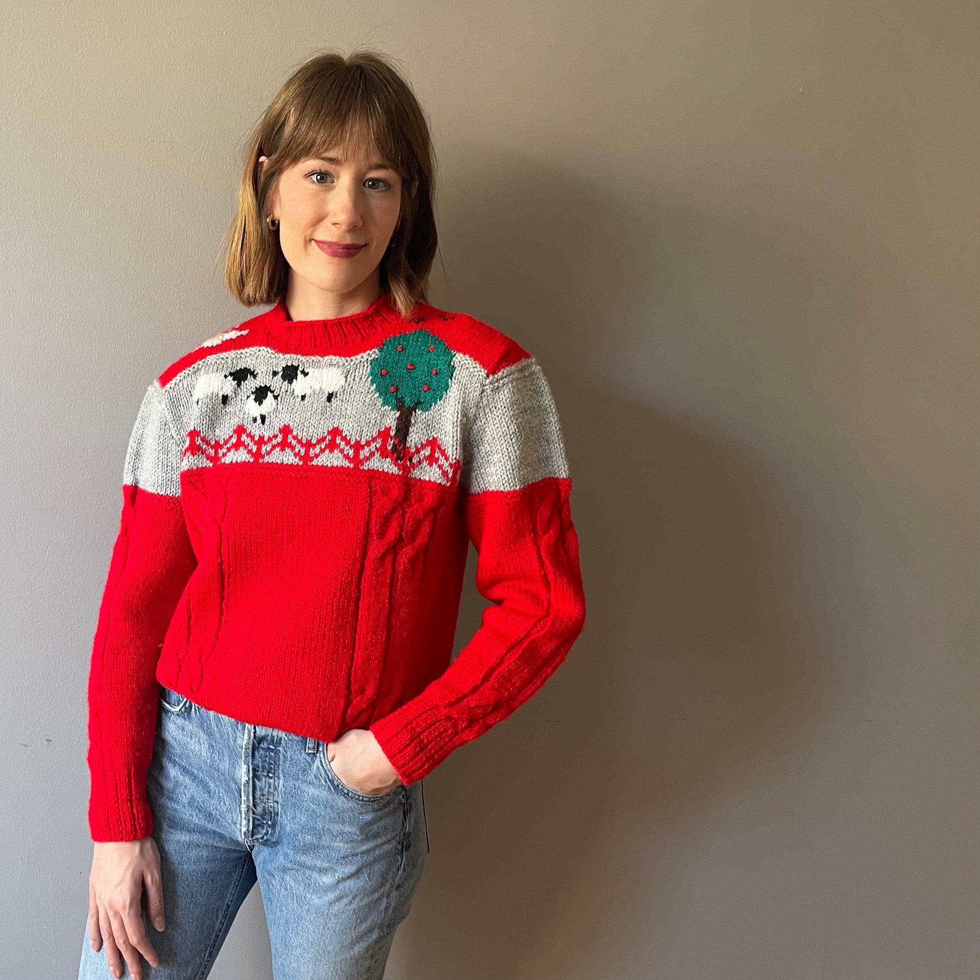Vintage Cherry Red Sheep Sweater (Size XS/S)