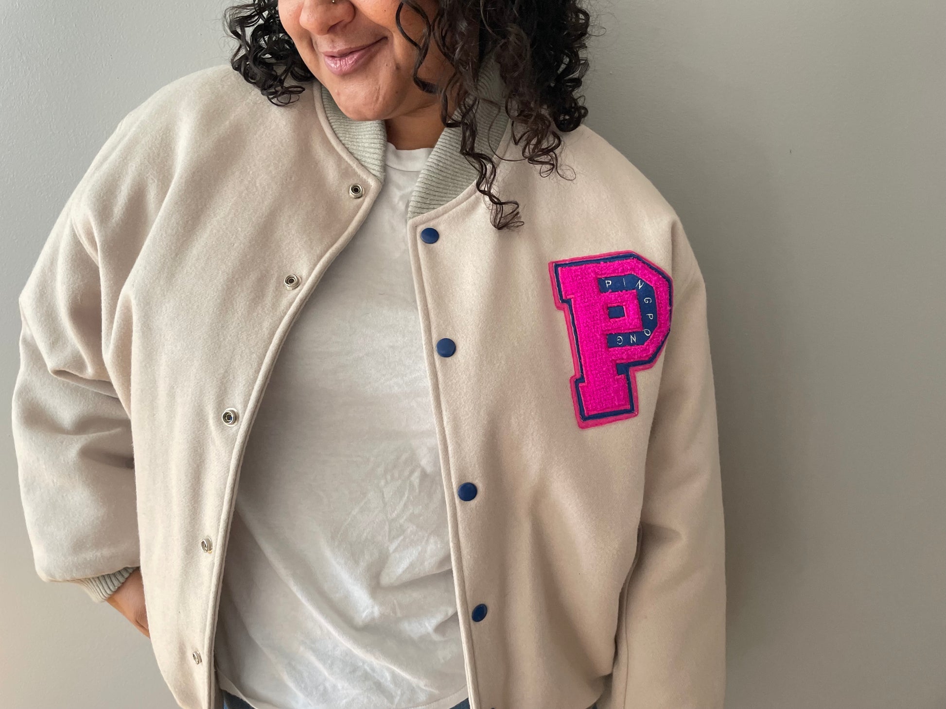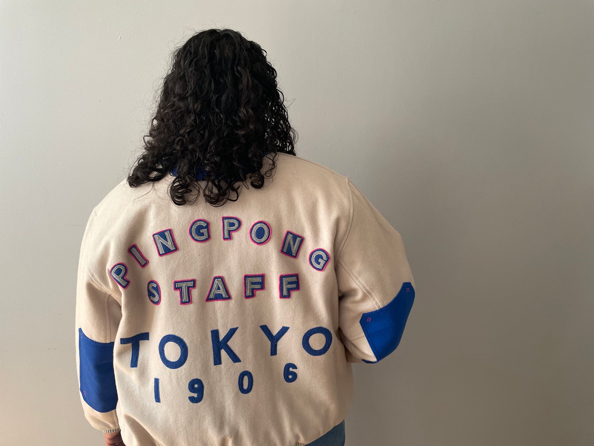 ITEM DESCRIPTION: Incredible vintage varsity style "ping pong" jacket